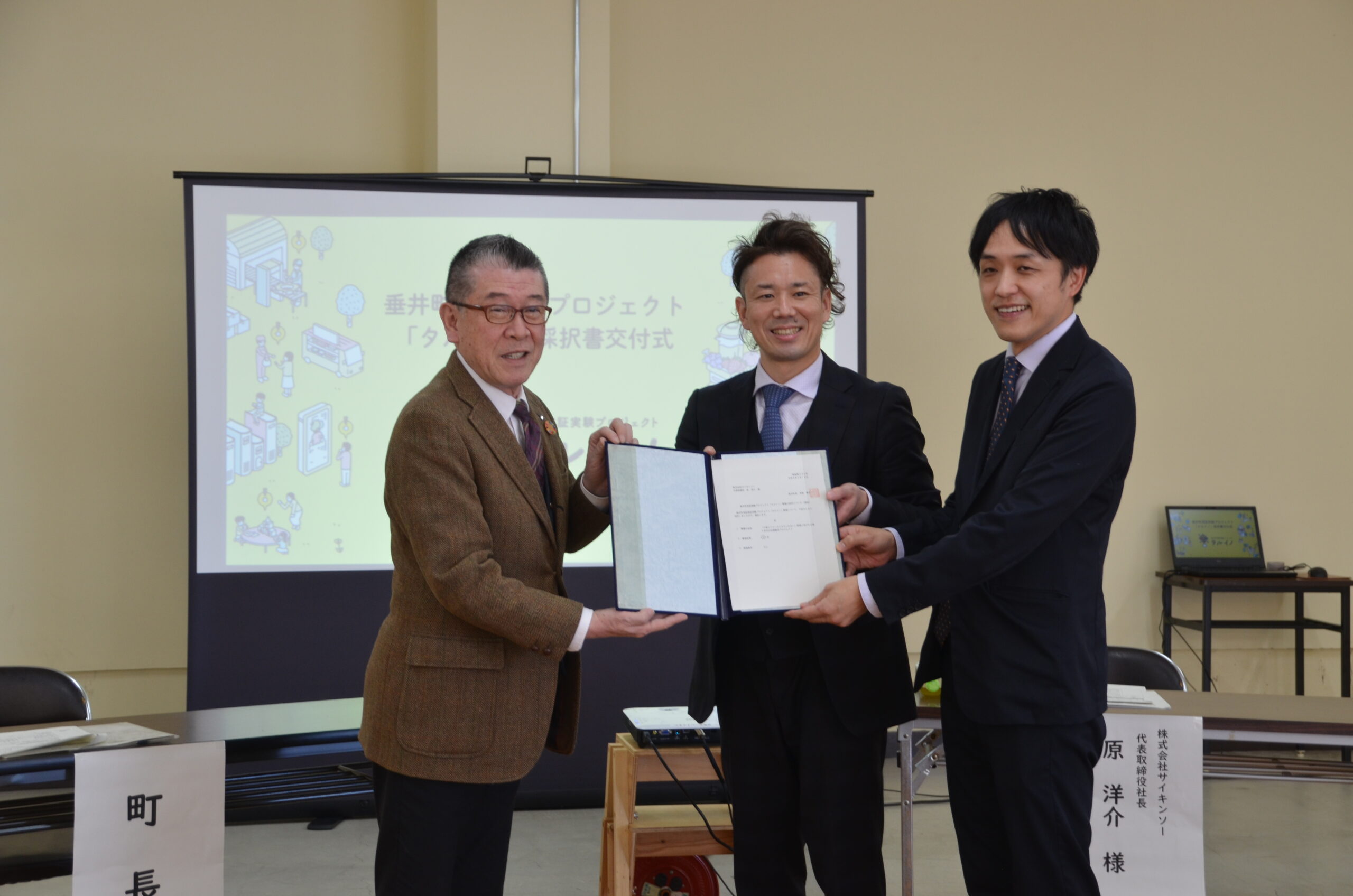 垂井町実証実験プロジェクト「タルイノ」、株式会社サイキンソーへ採択書が授与されました